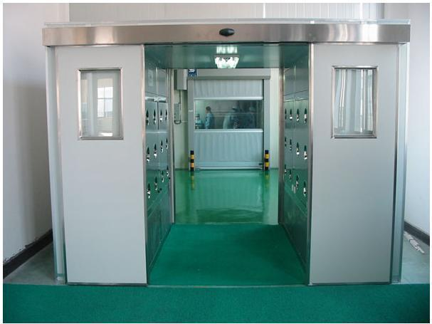風淋室是人進入潔凈室所必需的通道,它可以減少進出潔凈室所帶來的污染問題,減少由于人貨進出帶來的大量塵埃粒子由潔凈室的入口處安裝功能齊全的“氣閘室”可以減少空氣污染微粒的數量,當人貨通過風淋室時,污染微粒被經過高效過濾的高度潔凈空氣射掉,25m/s以上的高風速確保了有效的噴射和飄移微粒經過初效和高效兩級過濾器基本過濾掉。為了保持風淋的安全使用,維持潔凈室環境的潔凈度
