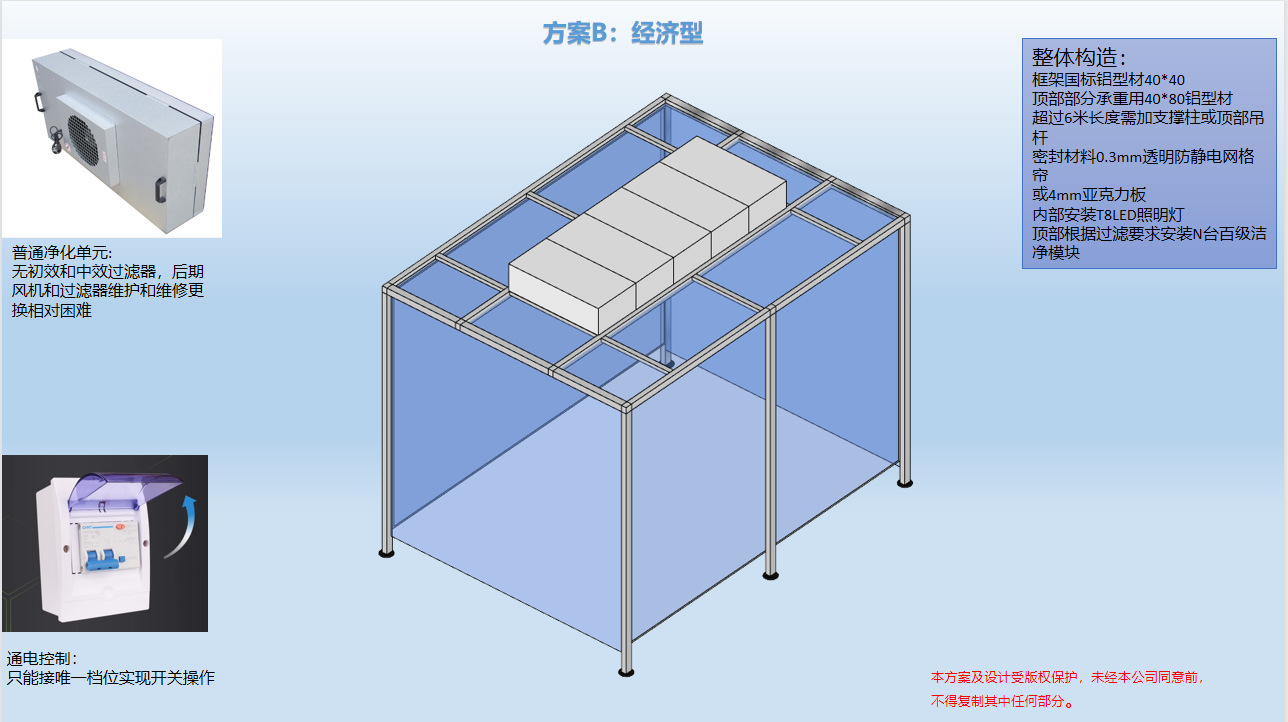 2.與土建式或裝配式百級潔凈室相 比,投資少,見效快,安裝簡便,運行費用低。